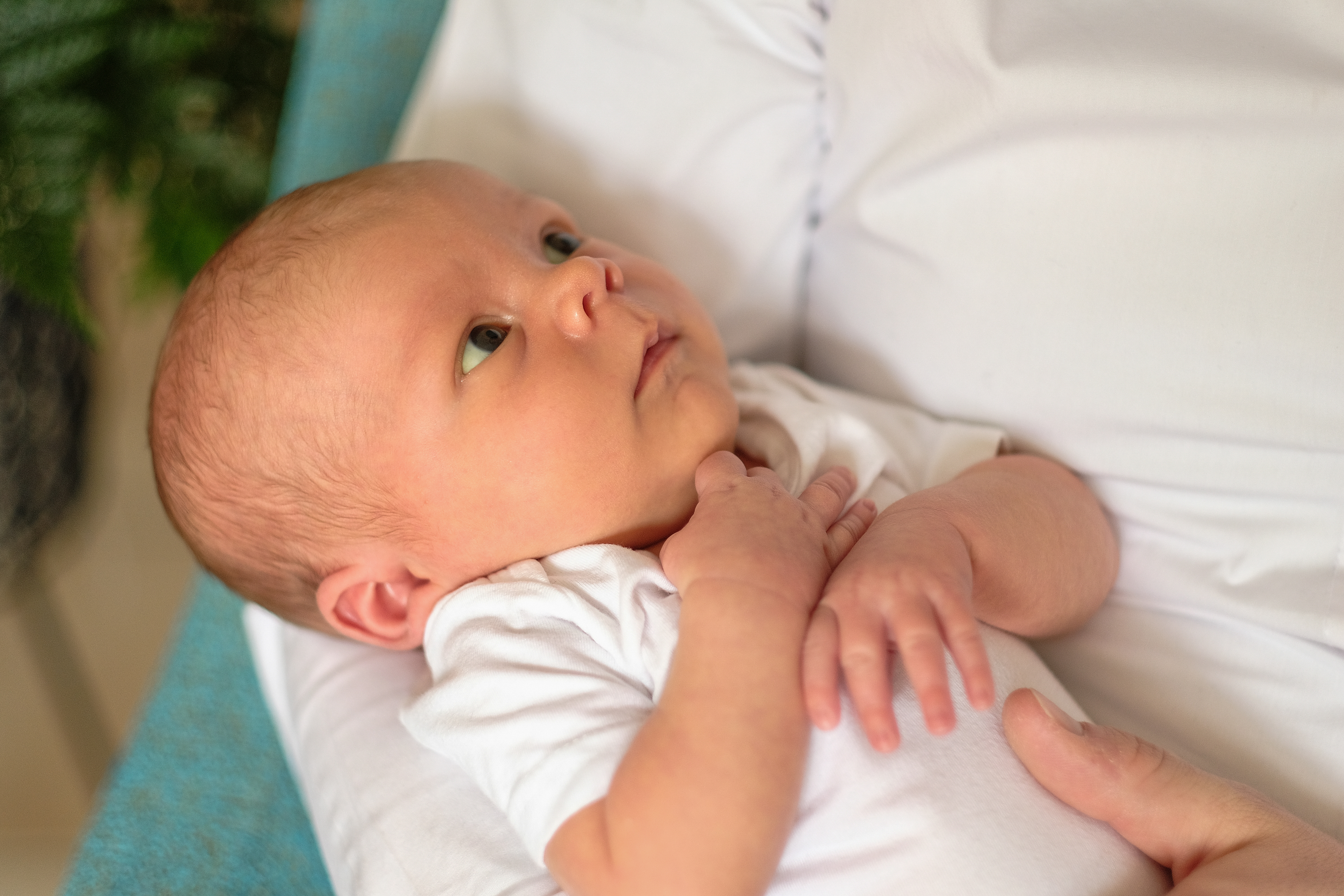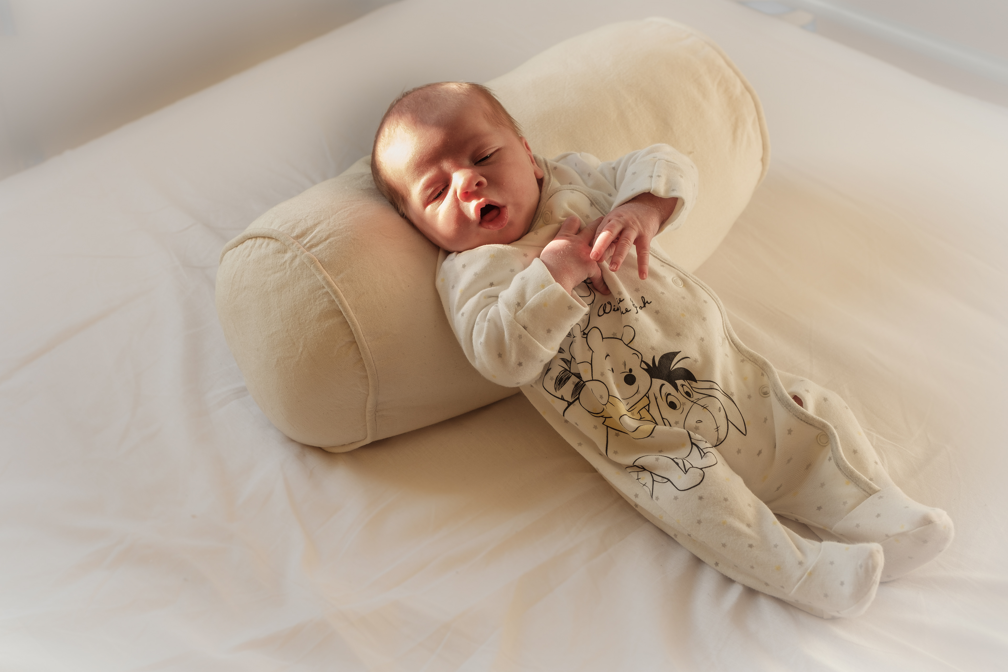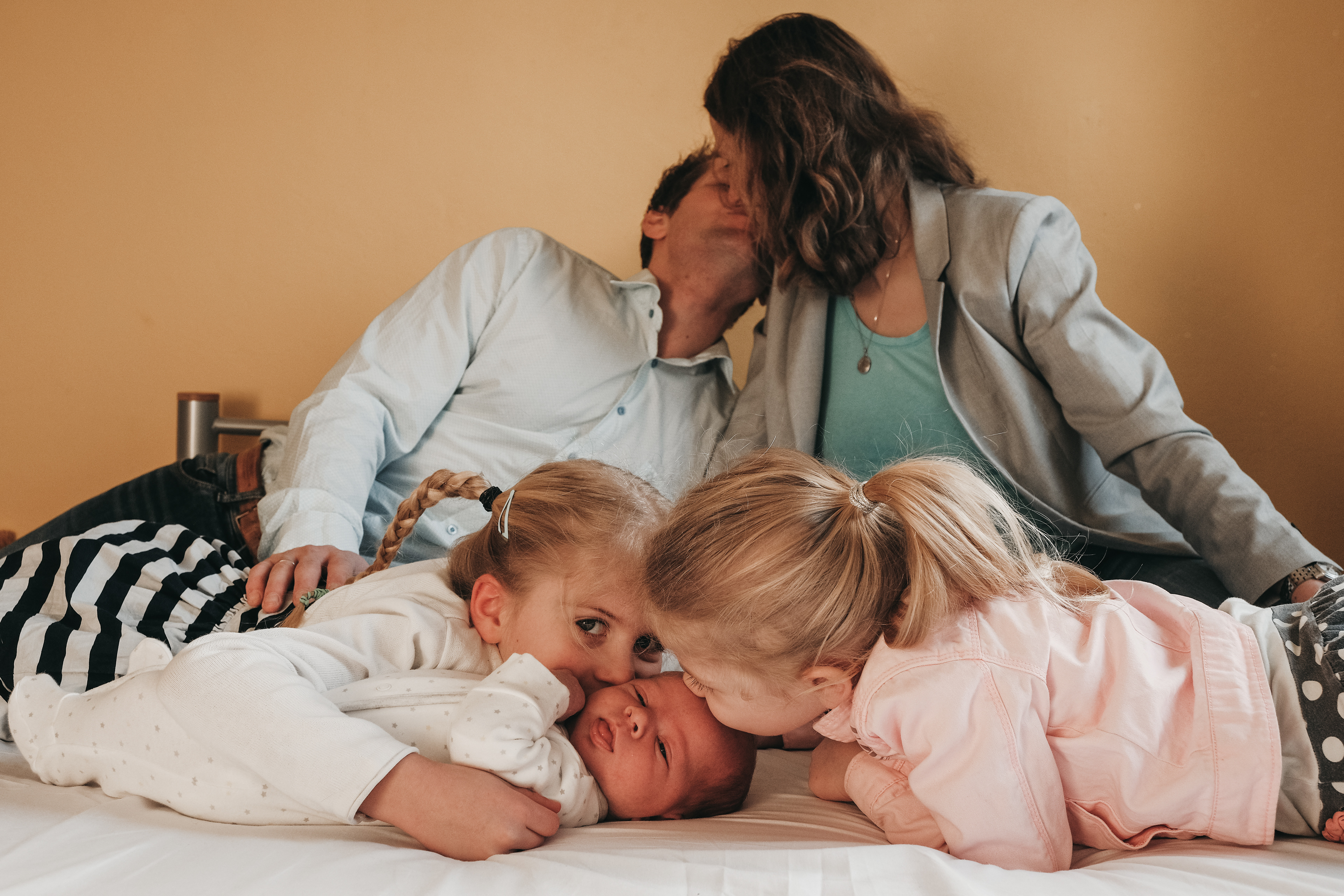 Een lifestyle newbornshoot vindt wel plaats op een tijdstip met genoeg daglicht, dus geen schemering.