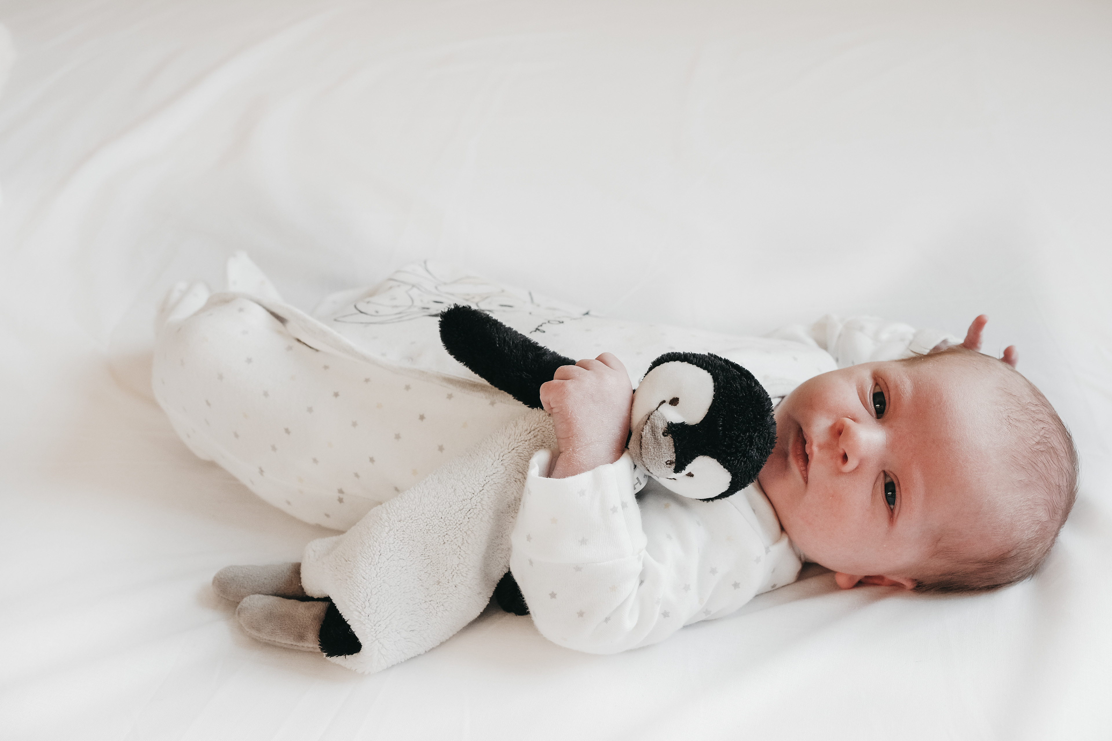 Andere kleuren of prints in het dekbed leiden erg af van de baby en beperkt mij dus in de foto’s.